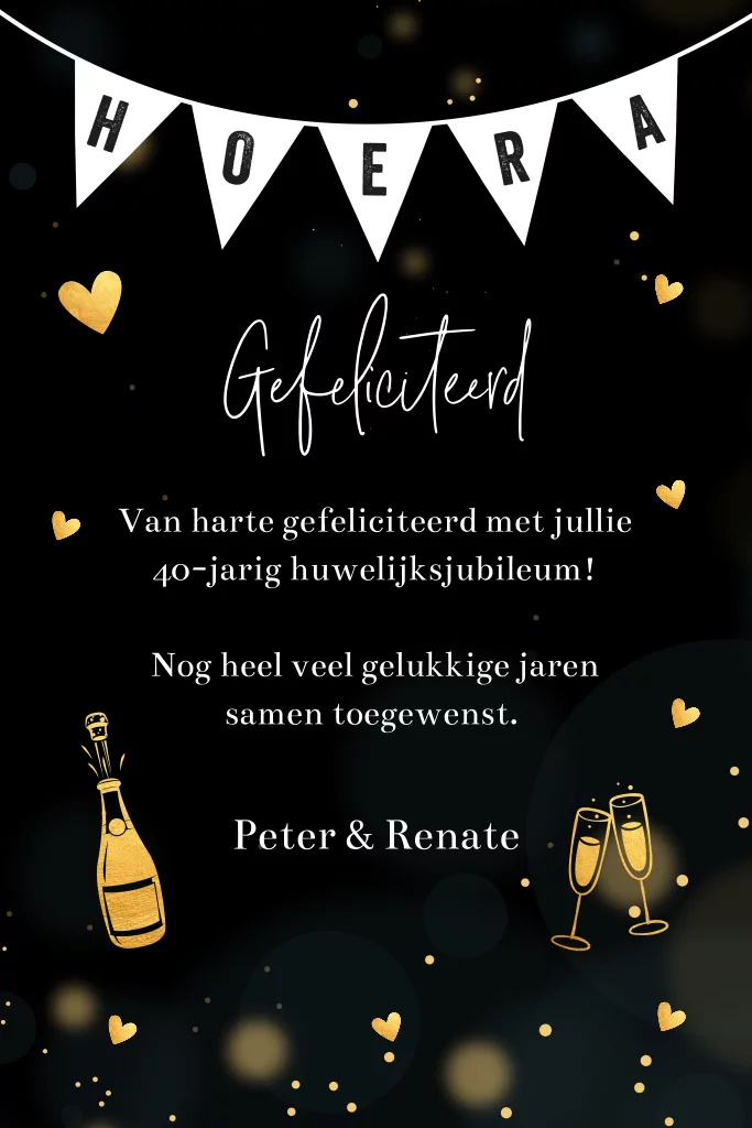 Felicitatie huwelijksjubileum 40 jaar getrouwd zwart goud