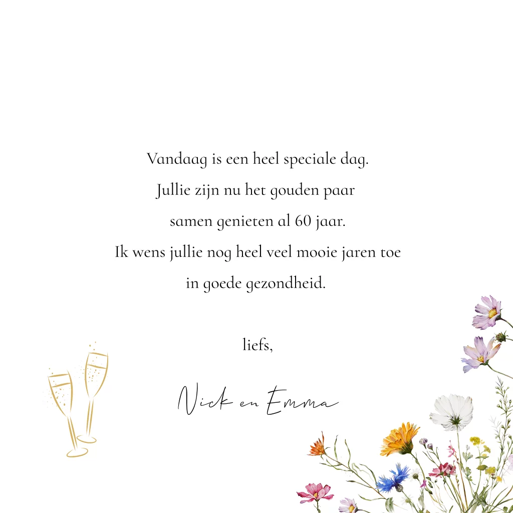 Felicitatie kaart jubileum bloemen goudfolie 60 jaar getrouwd