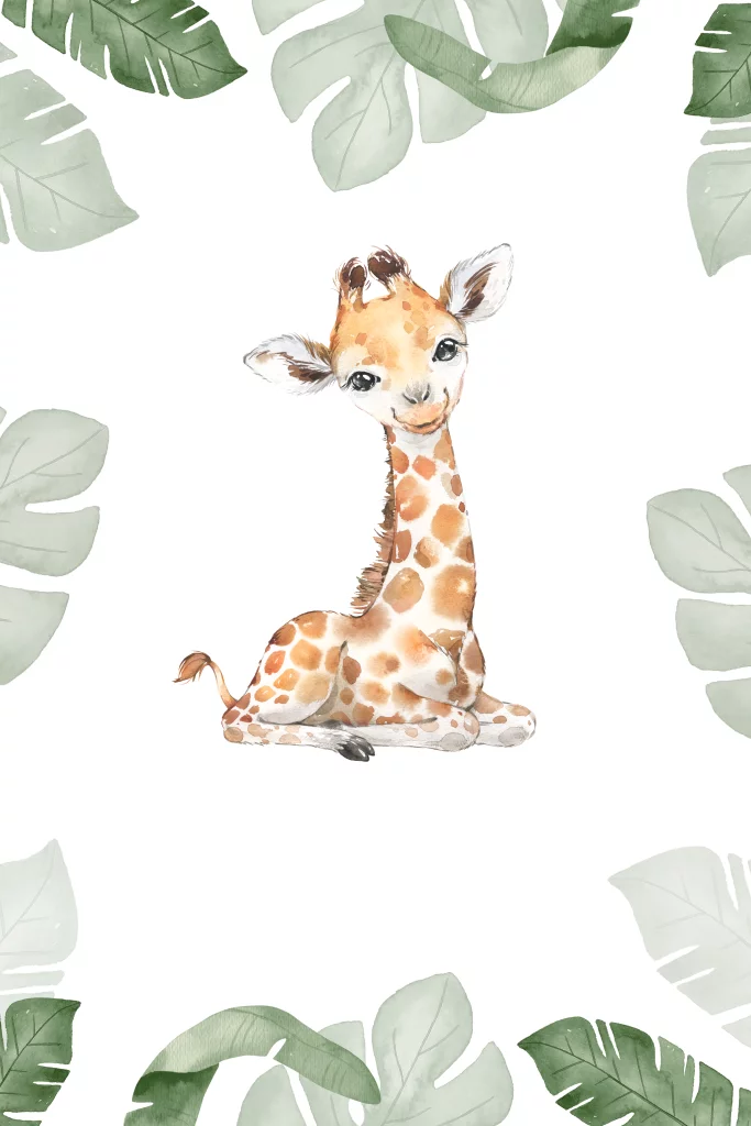 Mijlpaalkaart baby eerste jaar jungle giraffe bladeren goudfolie