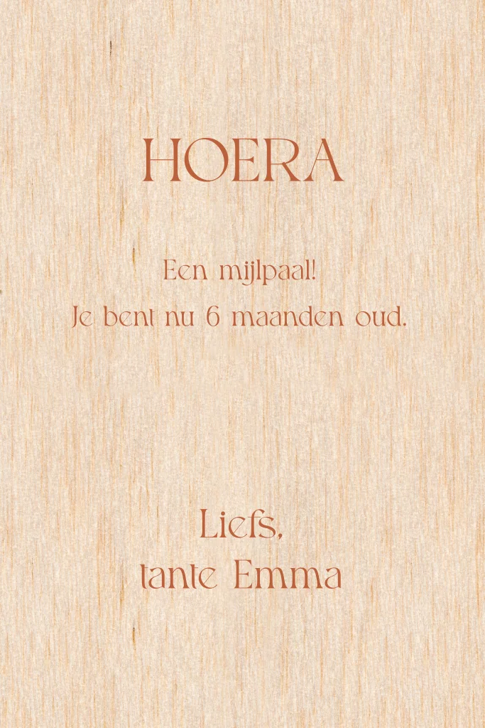 Mijlpaalkaart baby eerste jaar 6 maanden met lief beertje.