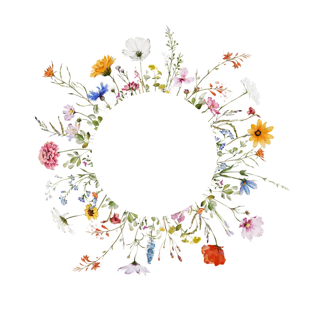 Moederdagkaart wit voor moeder en oma met zomerse bloemenkrans en goudfolie.