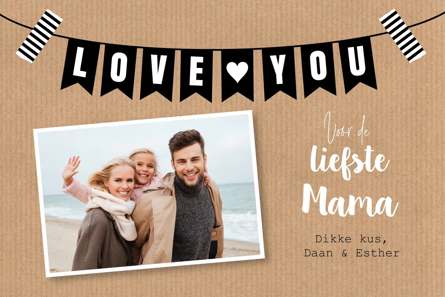 Moederdagkaart met eigen foto, slinger en kraftlook.
