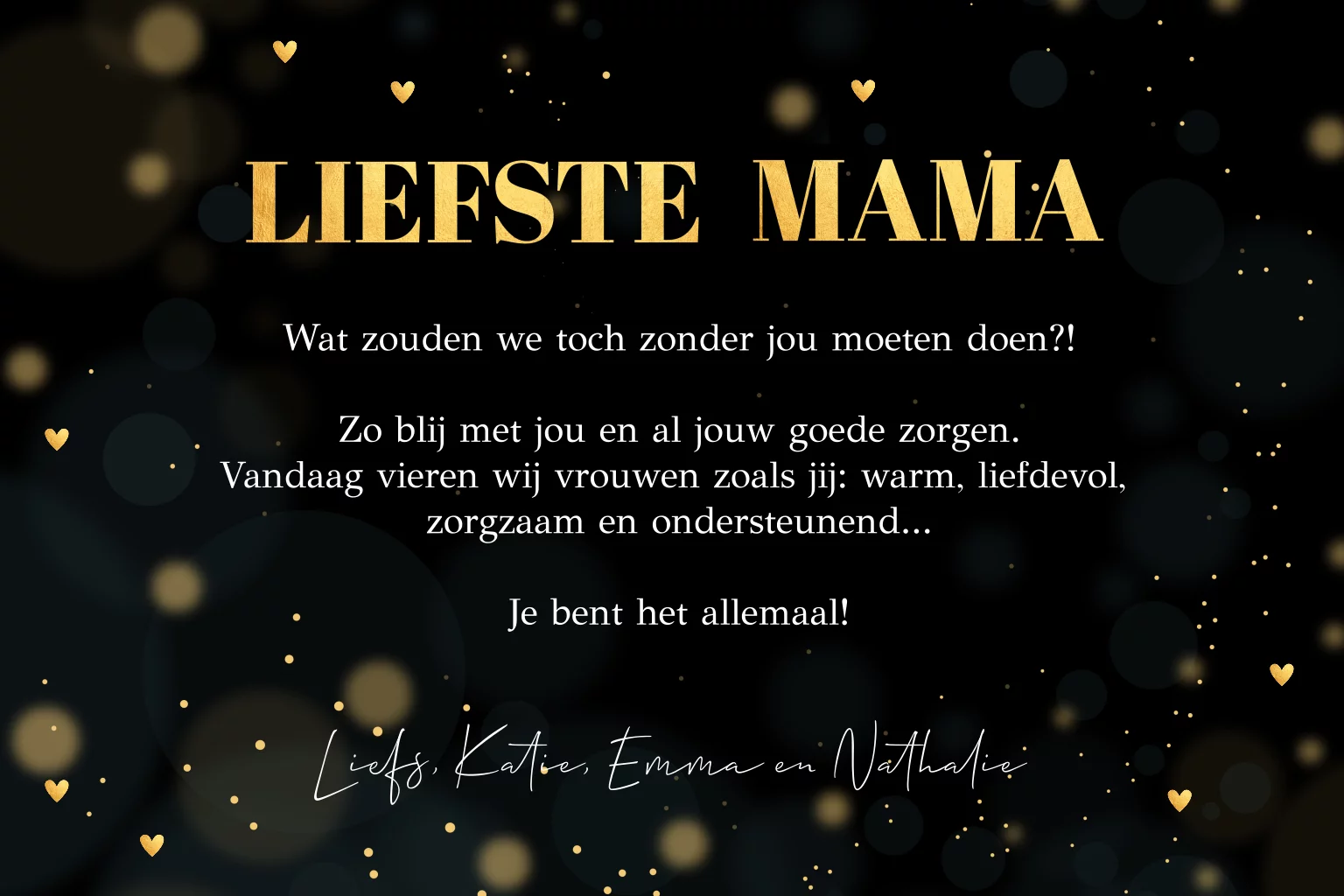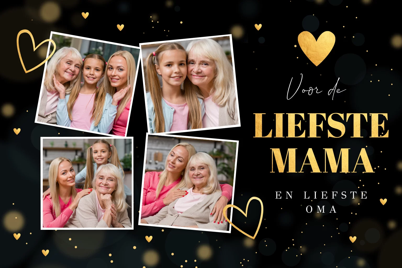 Moederdagkaart fotocollage zwart goudlook hartjes