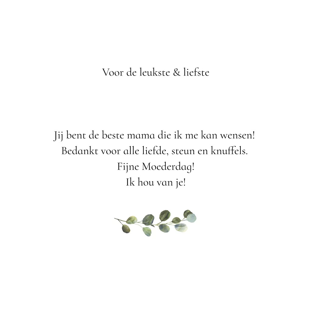 Stuur een mooie moederdag kaart naar je moeder of schoonmoeder om haar in het zonnetje te zetten. Maak je moederdag kaart zelf online op met eigen tekst en of een foto, helemaak leuk!