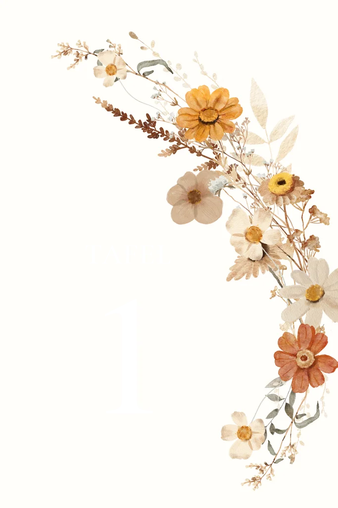 Dit mooie tafelnummerkaartje kun je op tafel plaatsen voor de gastenindeling tijdens het huwelijksdiner. Pas dan het nummer op dit kaartje aan in de tool en bewaar onder je account. Kopieer het kaartje onder je account en zet het volgende nummer erop.