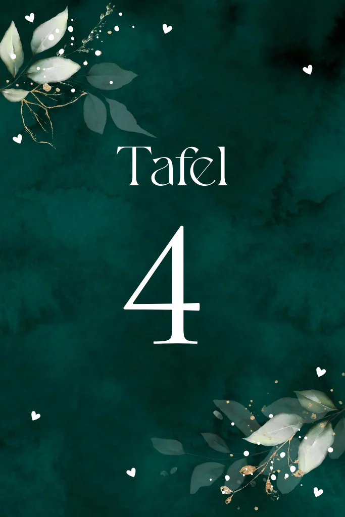Dit mooie tafelnummerkaartje kun je op tafel plaatsen voor de gastenindeling tijdens het huwelijksdiner. Pas dan het nummer op dit kaartje aan in de tool en bewaar onder je account. Kopieer het kaartje onder je account en zet het volgende nummer erop.