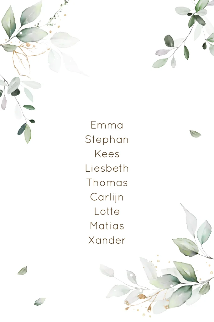 Dit mooie tafelnummerkaartje kun je op tafel plaatsen voor de gastenindeling tijdens het huwelijksdiner. Pas dan het nummer op dit kaartje aan in de tool en bewaar onder je account. Kopieer het kaartje onder je account en zet het volgende nummer erop.