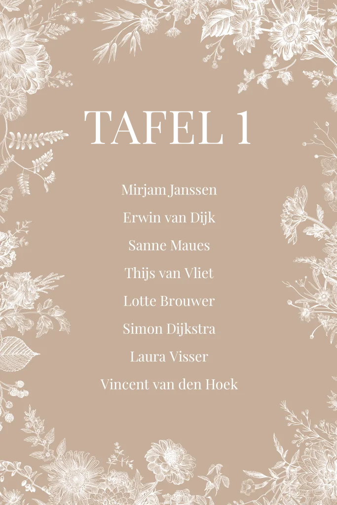 Dit mooie tafelnummerkaartje kun je op tafel plaatsen voor de gastenindeling tijdens het huwelijksdiner. Pas dan het nummer op dit kaartje aan in de tool en bewaar onder je account. Kopieer het kaartje onder je account en zet het volgende nummer erop.