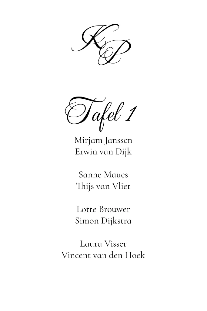 Klassieke tafelkaart huwelijk bruiloft zwart wit initialen naam