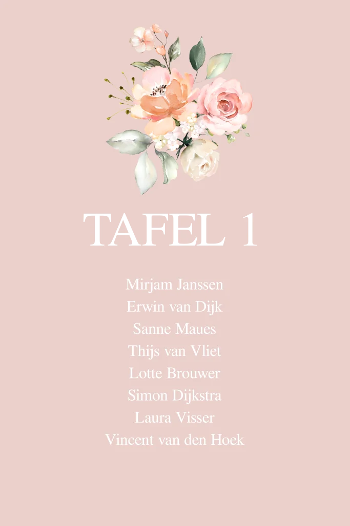 Dit mooie tafelnummerkaartje kun je op tafel plaatsen voor de gastenindeling tijdens het huwelijksdiner. Pas dan het nummer op dit kaartje aan in de tool en bewaar onder je account. Kopieer het kaartje onder je account en zet het volgende nummer erop.