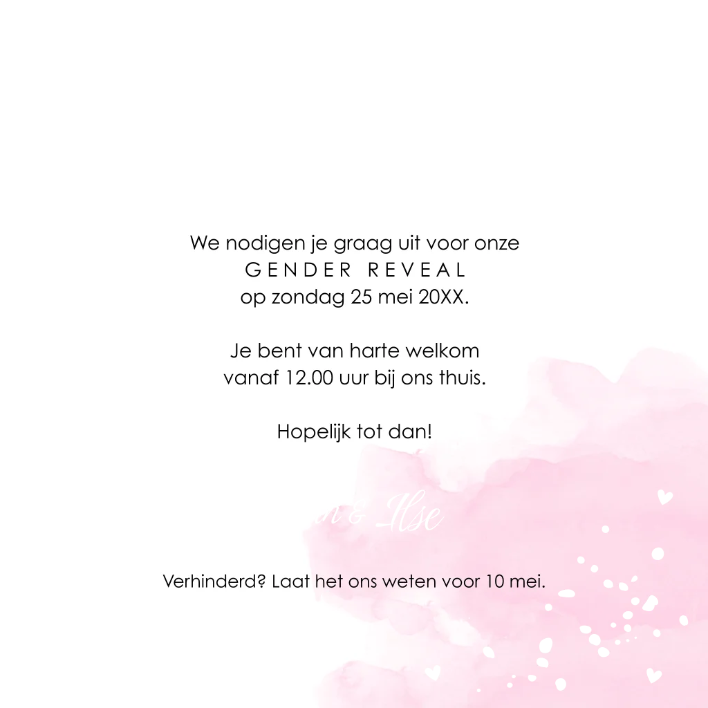 Uitnodiging baby gender reveal party watercolour blauw roze goudfolie