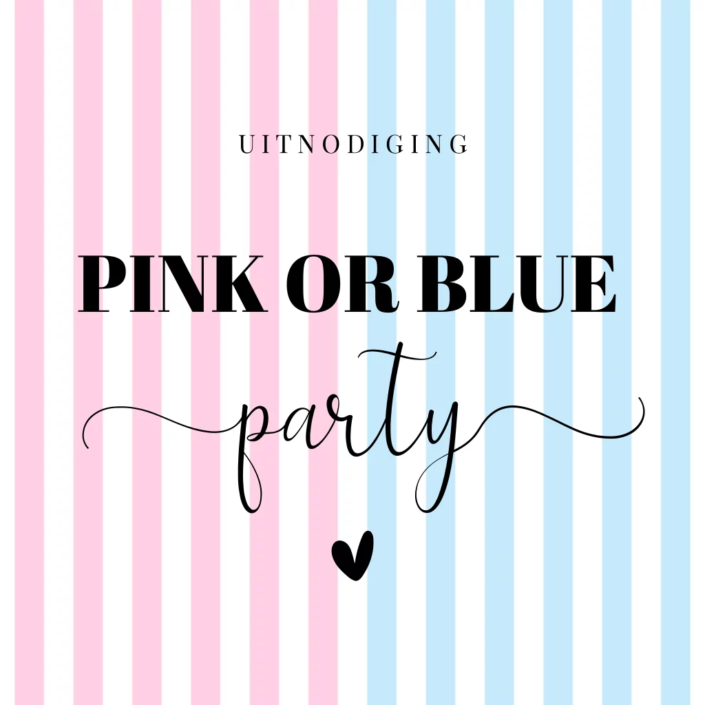 Uitnodiging voor een baby gender reveal party, pink or blue met blauw roze strepen.