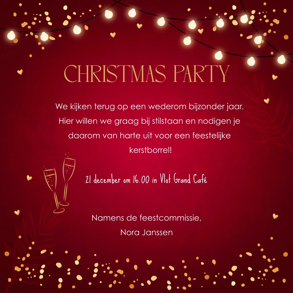 Kerstdiner uitnodiging Christmas party rood lampjes goud look