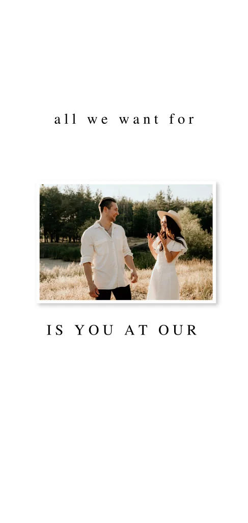Stijlvolle langwerpige kerst Save the Date kaart wit met foto, hartje en goudfolie. Pas de kleur van de kaart naar wens aan.
