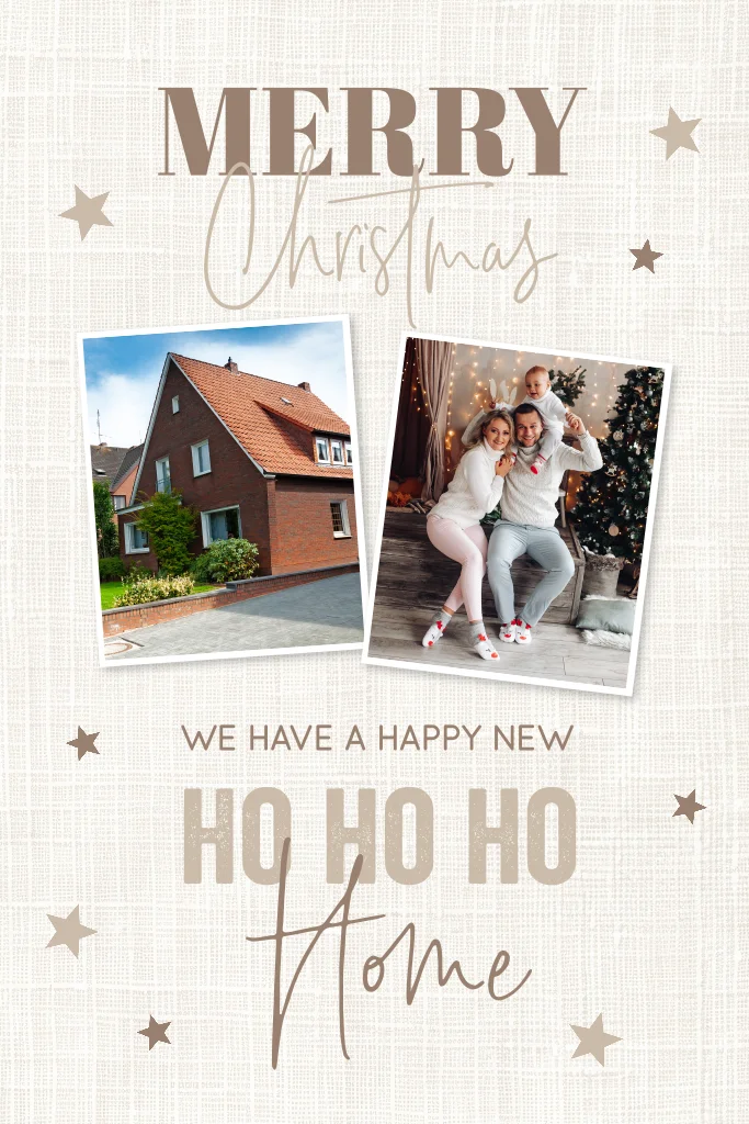 Onze prachtige Kerst verhuiskaart fotocollage met een wit linnen look en speelse sterren is een unieke manier om jullie verhuizing aan te kondigen tijdens de feestdagen. Met de mogelijkheid om foto's toe te voegen, wordt elke kaart een uniek kunstwerk dat jullie persoonlijkheid weerspiegelt. De linnen look en de subtiele sterren geven de kaart een vintage uitstraling, terwijl de witte achtergrond zorgt voor een frisse en moderne touch.