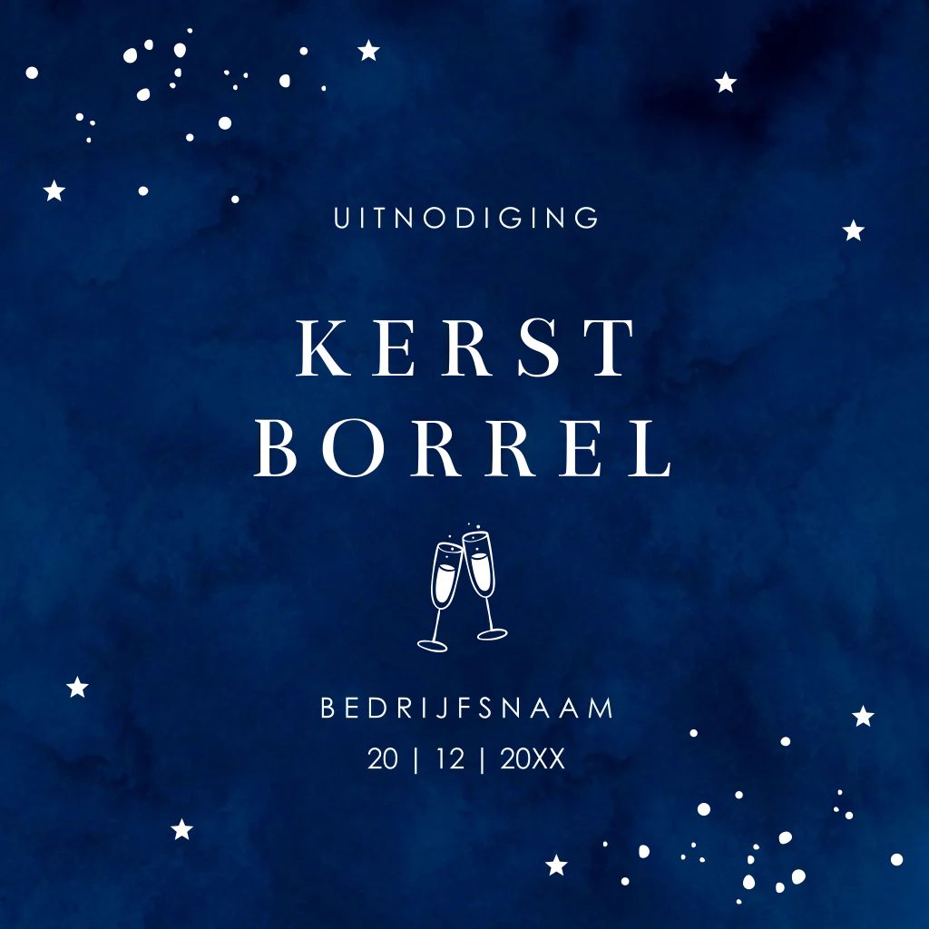 Stijlvolle zakelijke kerstborrel uitnodiging blauw met goudfolie.