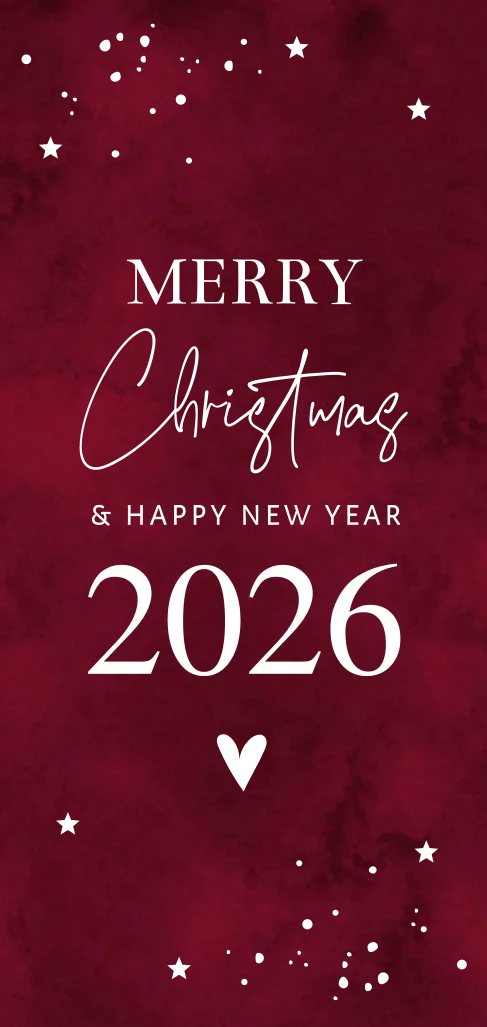 Stijlvolle luxe kerstkaart langwerpig rood met goudfolie.
