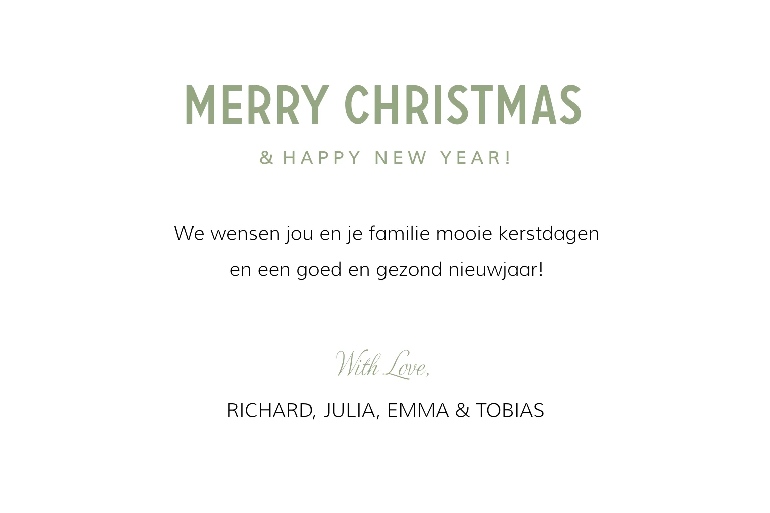Persoonlijke kerstkaart wit groen met eigen foto 's en mooie typografie.