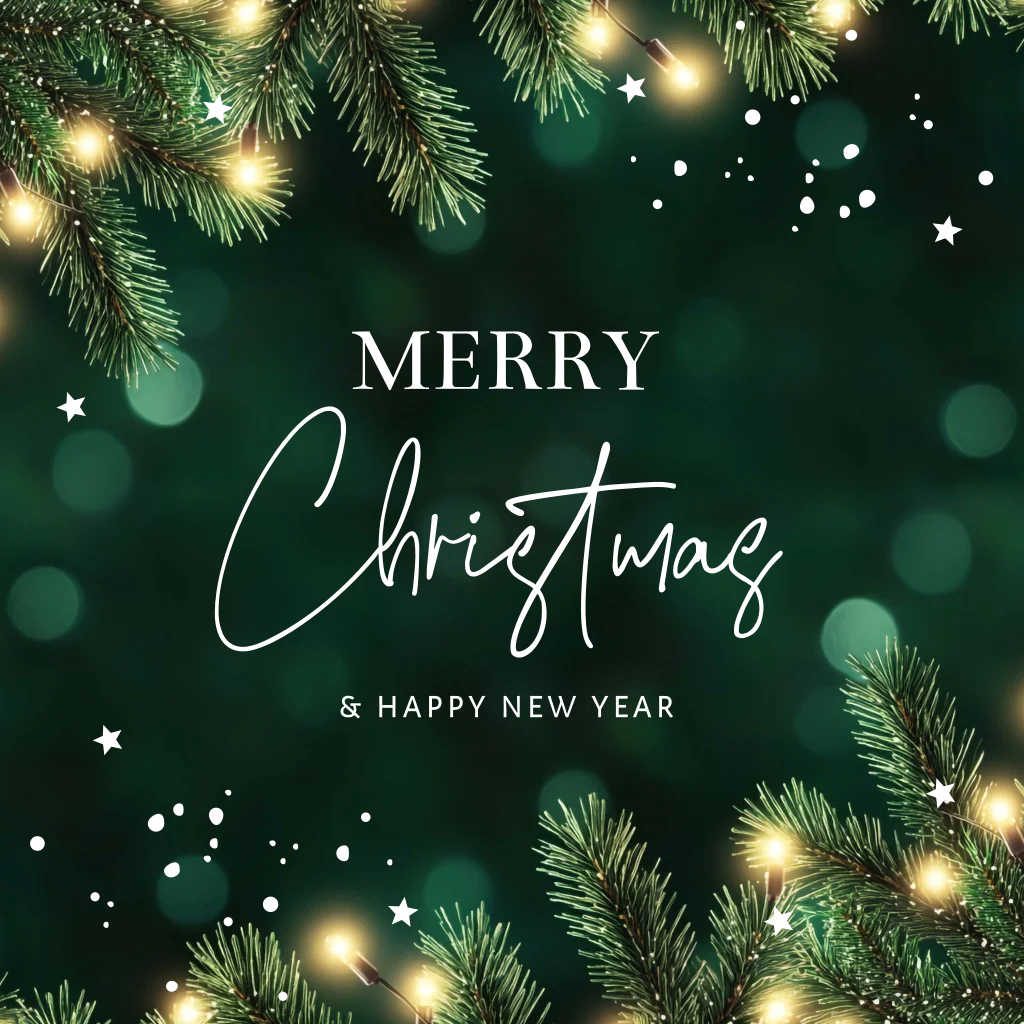 Kerstkaart groen met sfeervolle kersttakken en luxe goudfolie.