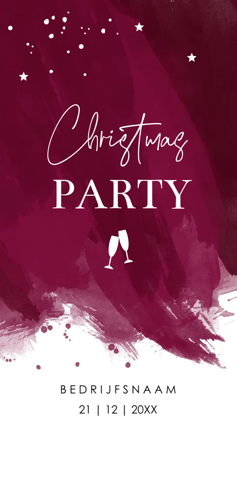 Luxe zakelijke kerstborrel uitnodiging rood langwerpig met watercolour en goudfolie.