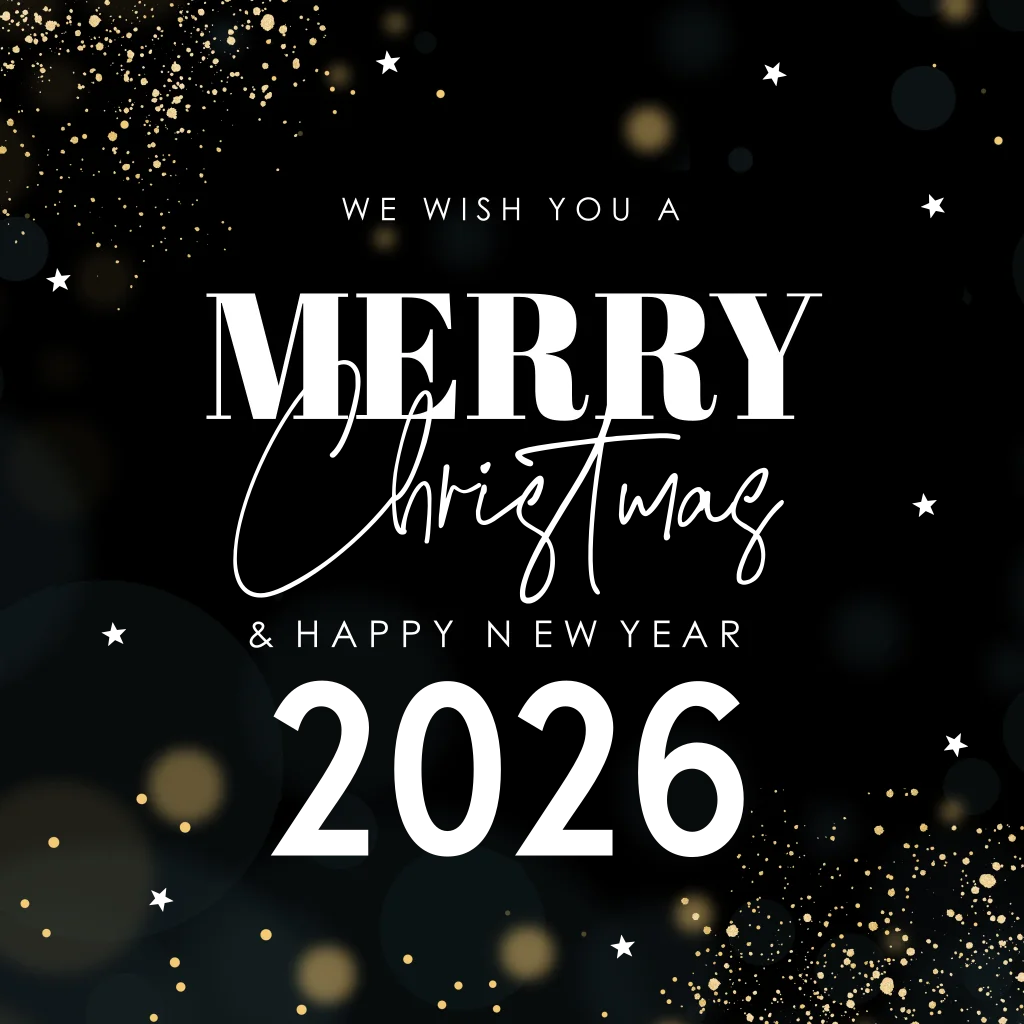 Stijlvolle zakelijke kerstkaart zwart met mooie typografie en goudfolie.