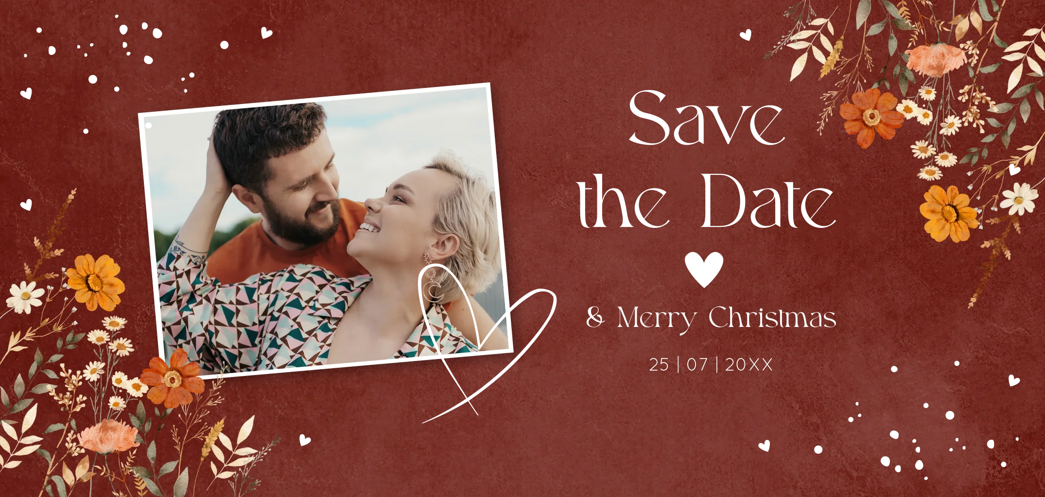 Save the Date kerstkaart botanisch groen bladeren goudfolie