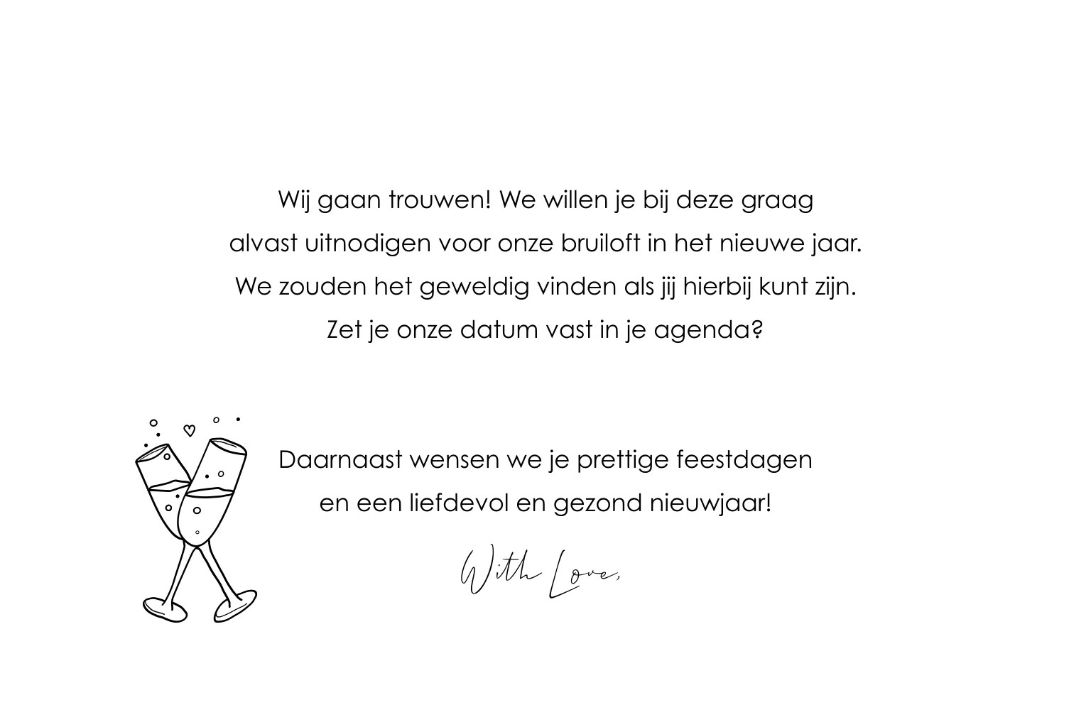 Save the Date kerstkaart zwart fotocollage spetters goudfolie