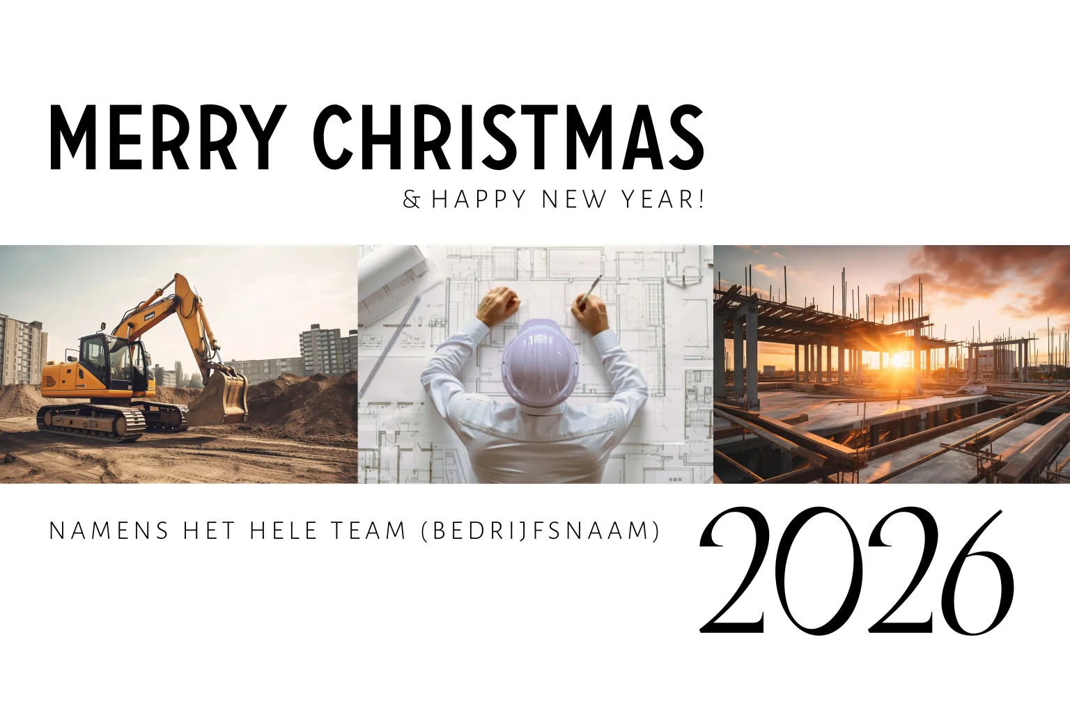 Zakelijke kerstkaart voor een bedrijf in de bouw sector met sfeervolle foto's. Wens al je zakelijke relaties, medewerkers en klanten fijne feestdagen toe met deze zakelijke kerstkaart.