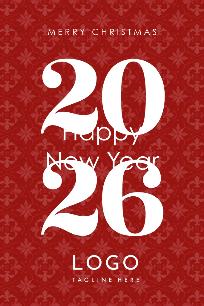 Zakelijke kerstkaart modern rood met jaartal 2026 en goudfolie.