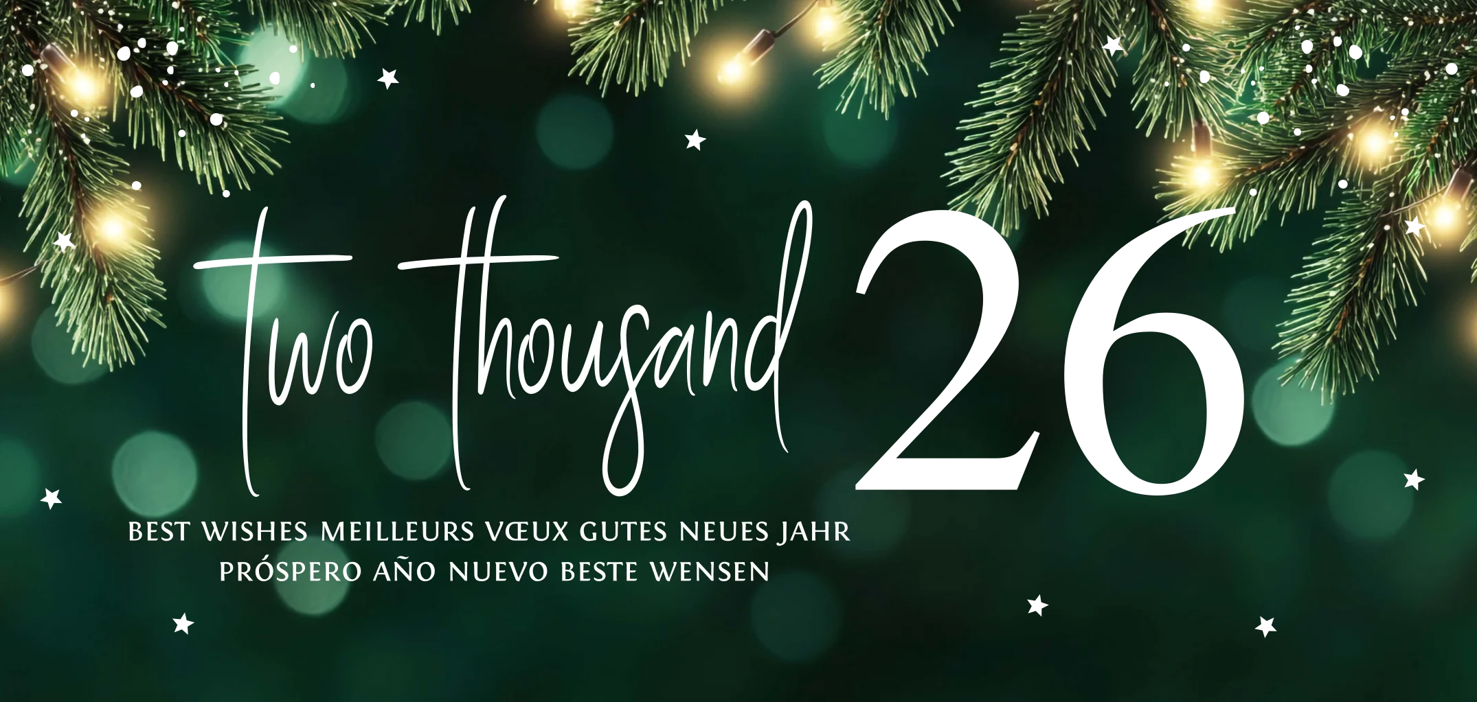 Mooie sfeervolle zakelijke kerstkaart groen met kersttakjes, lichtjes en goudfolie.