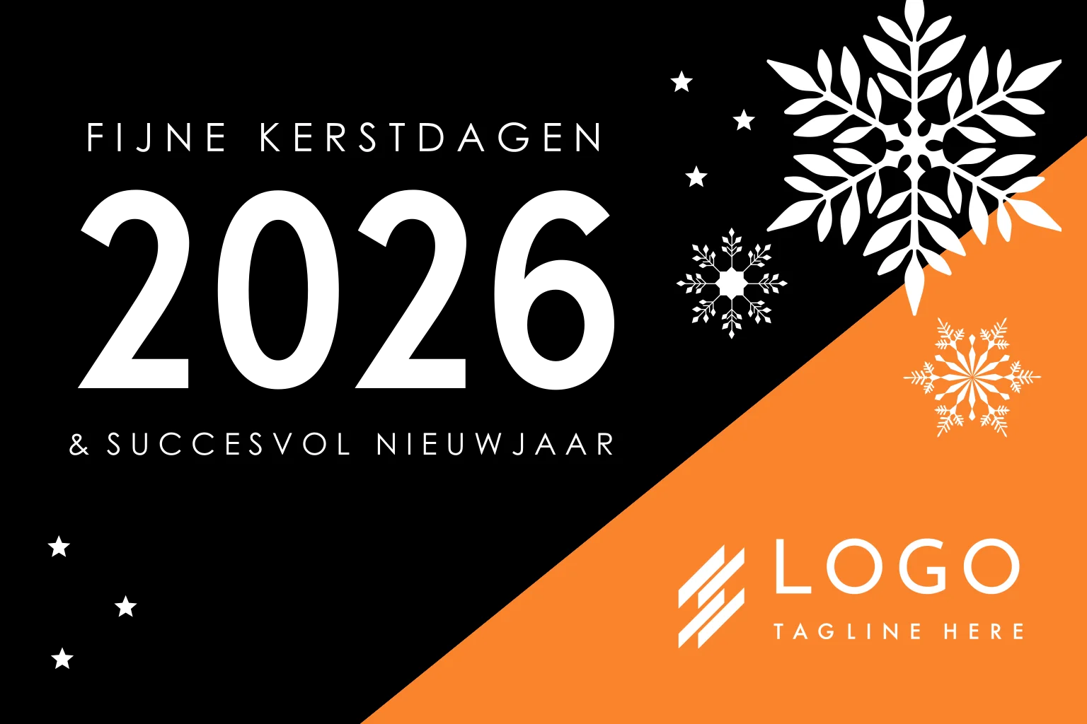 Luxe zakelijke kerstkaart oranje zwart 2026 modern goudfolie
