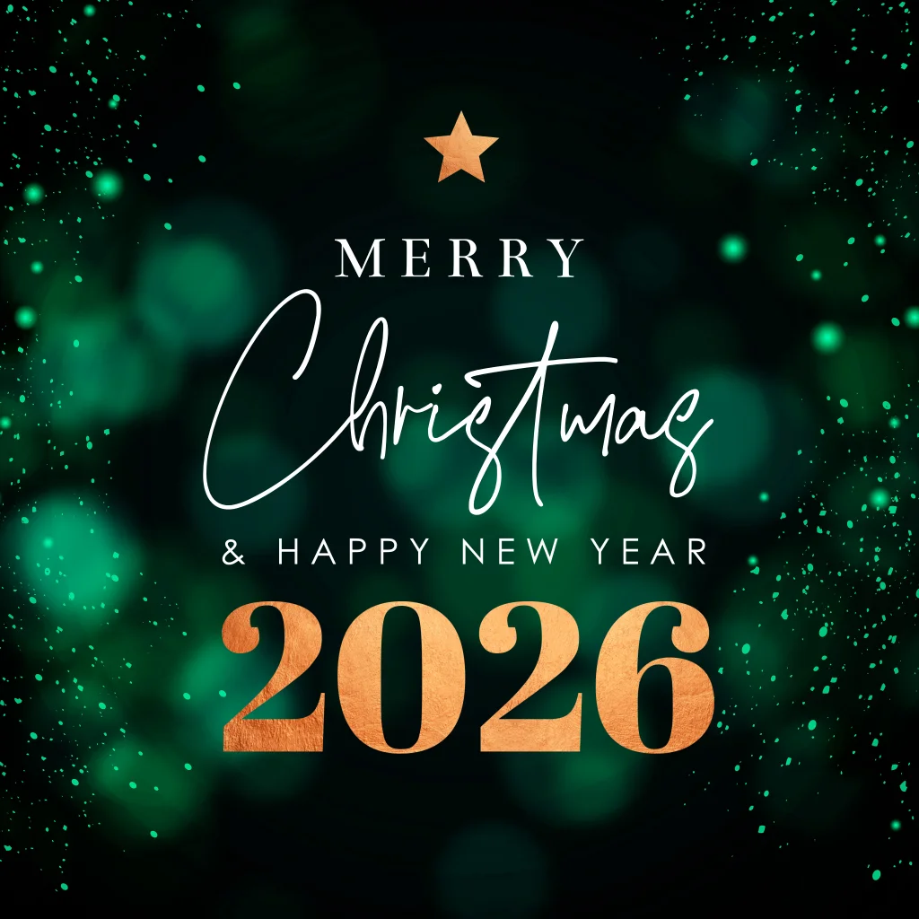 Zakelijke kerstkaart groen jaartal koperlook