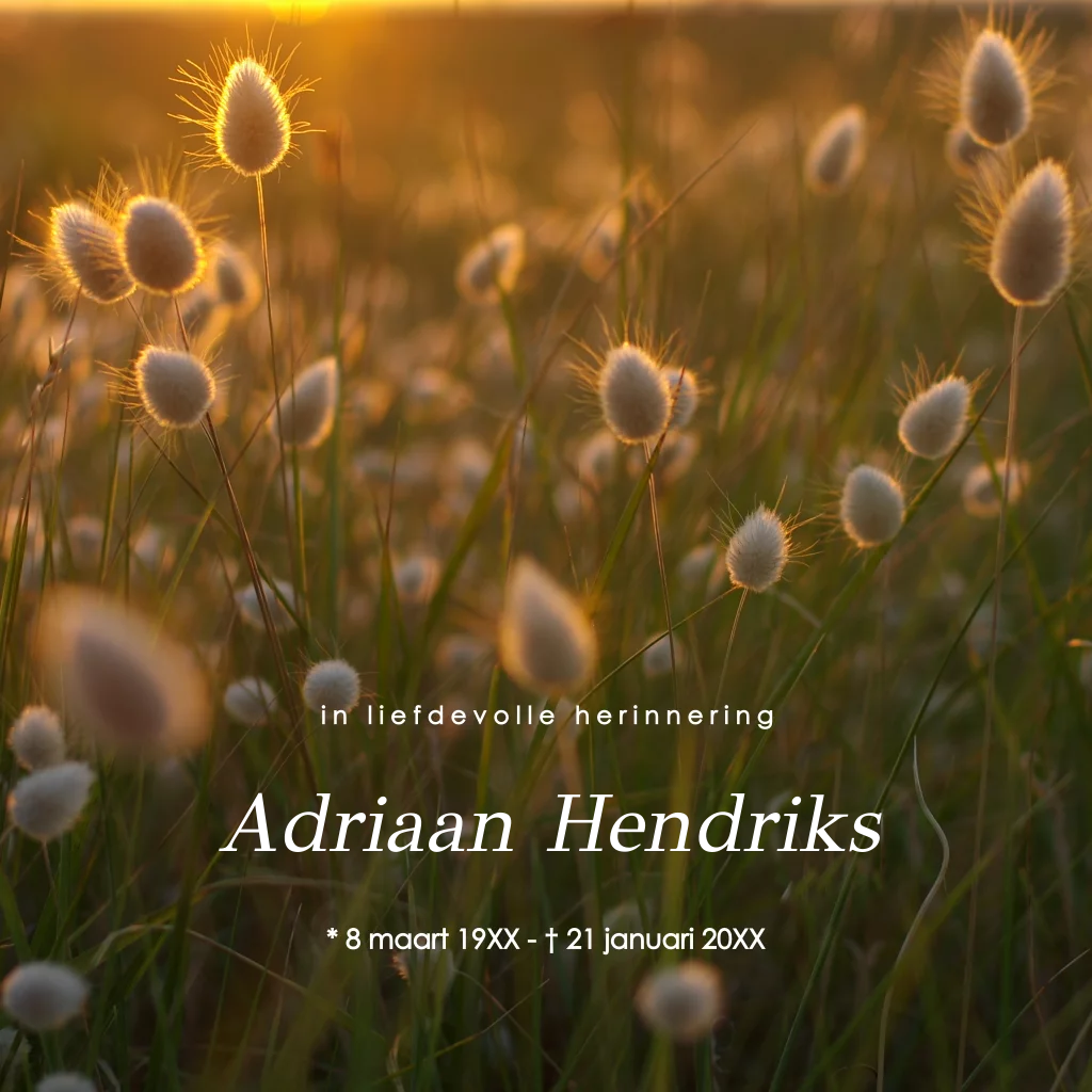 Rouwkaart voor een natuur liefhebber met prachtig landschap van gras en bloemen.