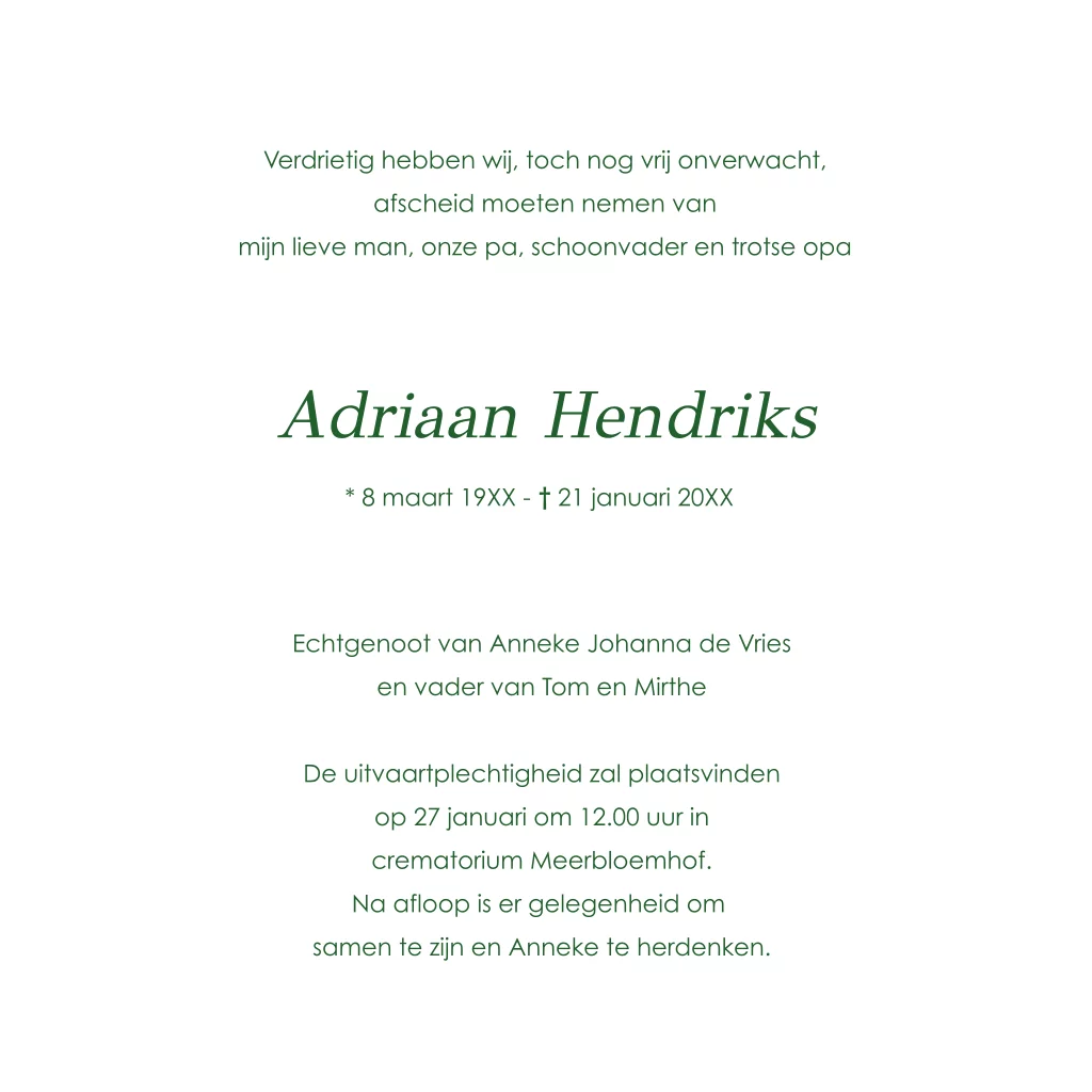 Stijlvolle en persoonlijke rouwkaarten online te bewerken met eigen tekst of eigen foto.