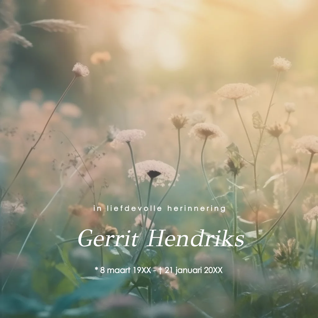 Rouwkaart voor een natuur liefhebber met prachtig landschap van gras en bloemen.