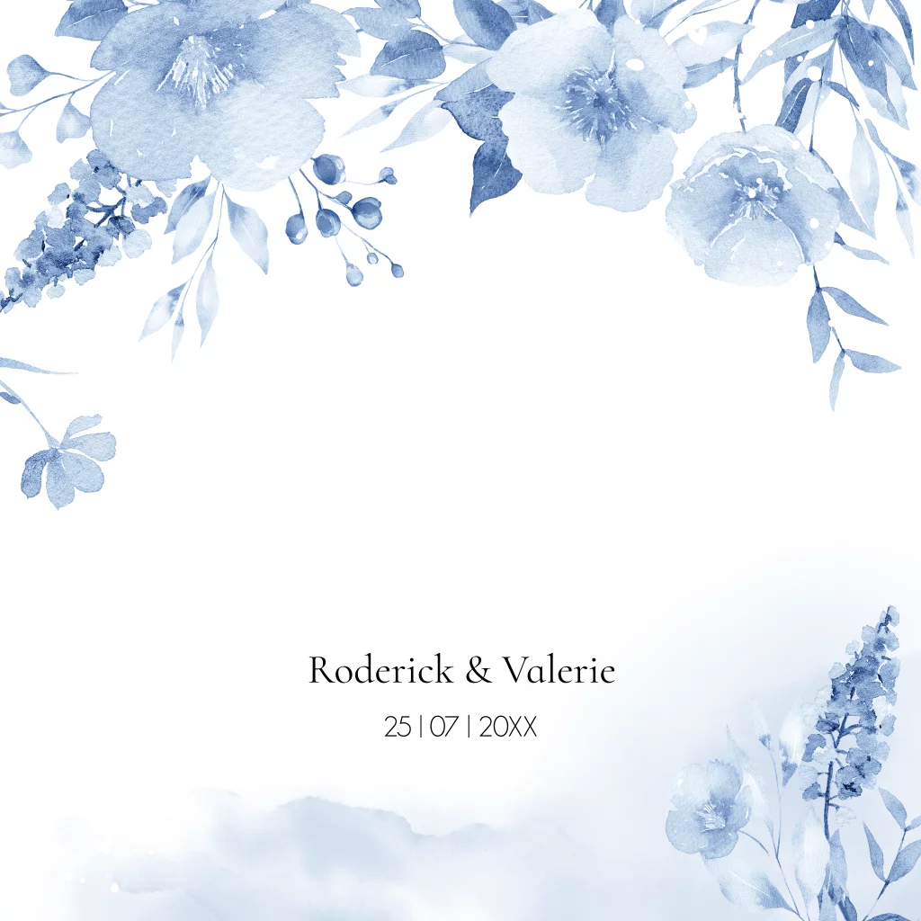 Bedankkaart huwelijk bloemen blauw goudfolie