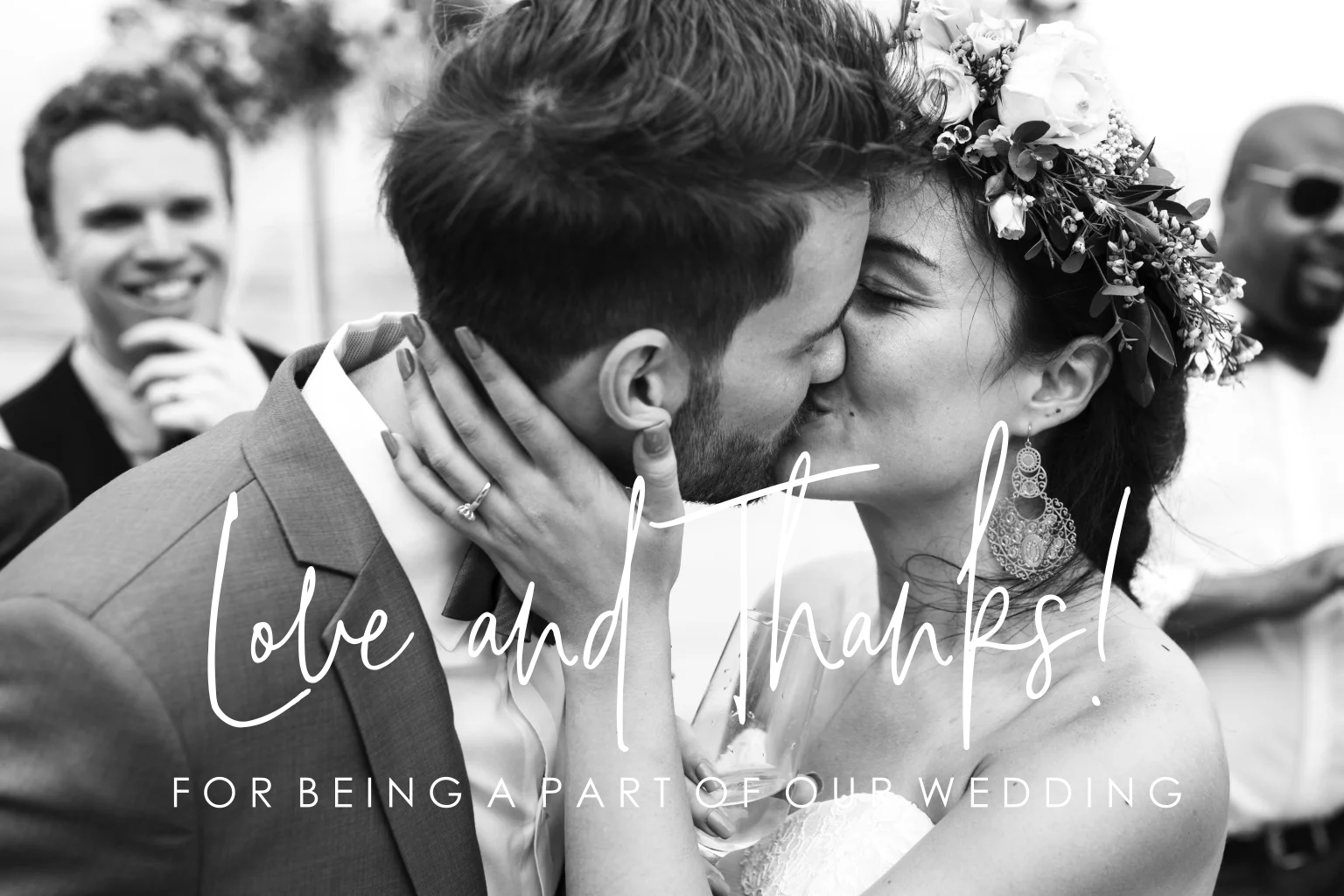 Bedankkaart huwelijk met zwart wit foto en goudfolie Love and Thanks. Bedank jullie gasten voor een onvergetelijke dag met deze prachtige bedankkaart.