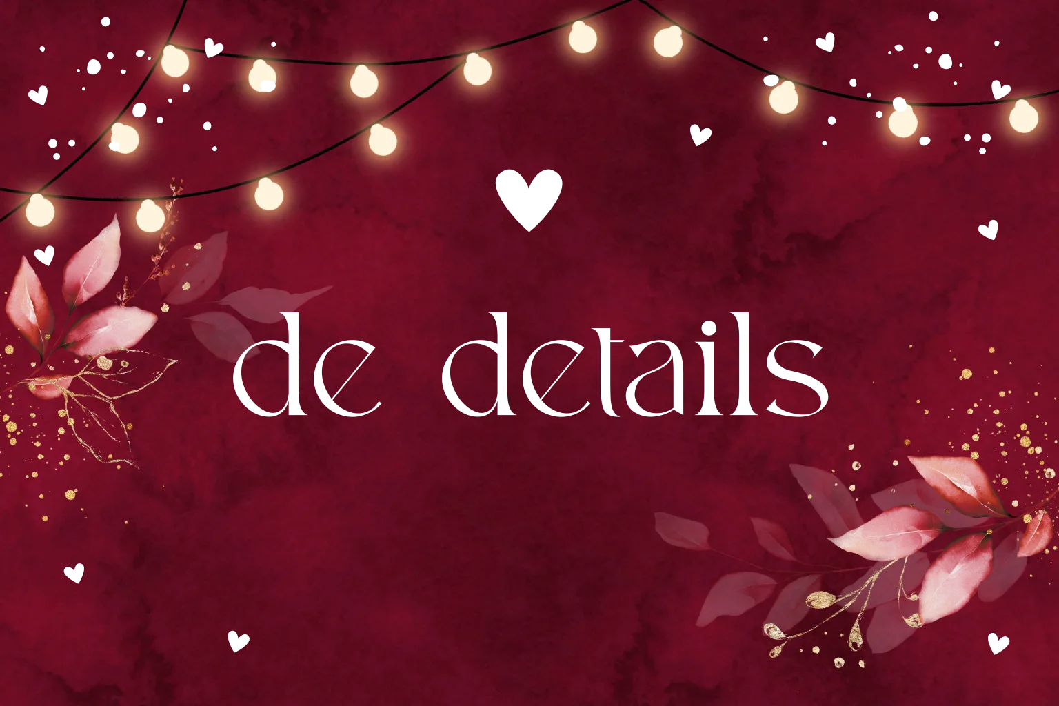 Extra informatie kaartje huwelijk rood bladeren lampjes goudfolie