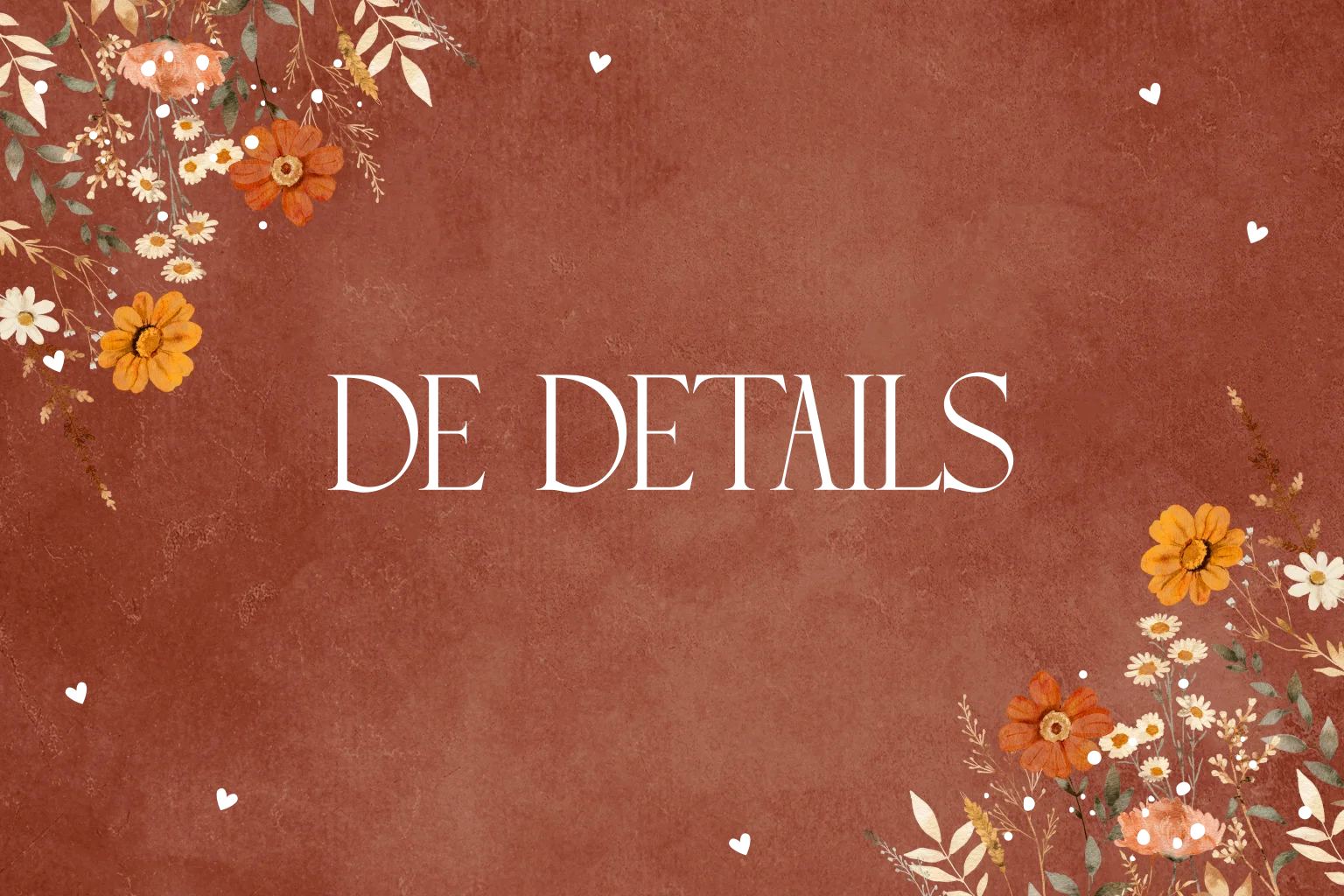 Een kaartje met extra bruiloft details. Handig voor de overige informatie of voor de informatie van de ceremoniemeester.