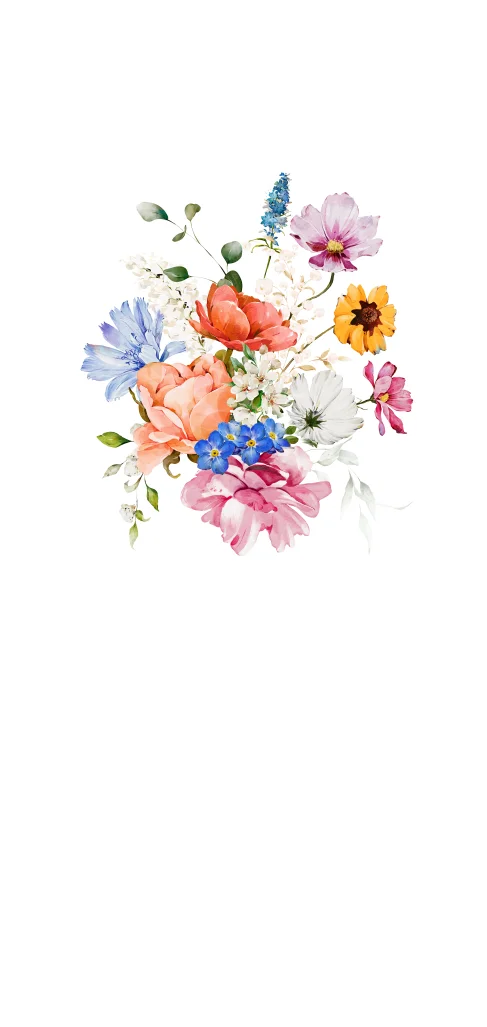 Menukaart langwerpig huwelijk kleurrijk watercolour bloemen roze en goudfolie.
