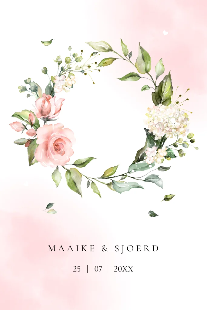 Menukaart huwelijk watercolour bloemen roze goudfolie