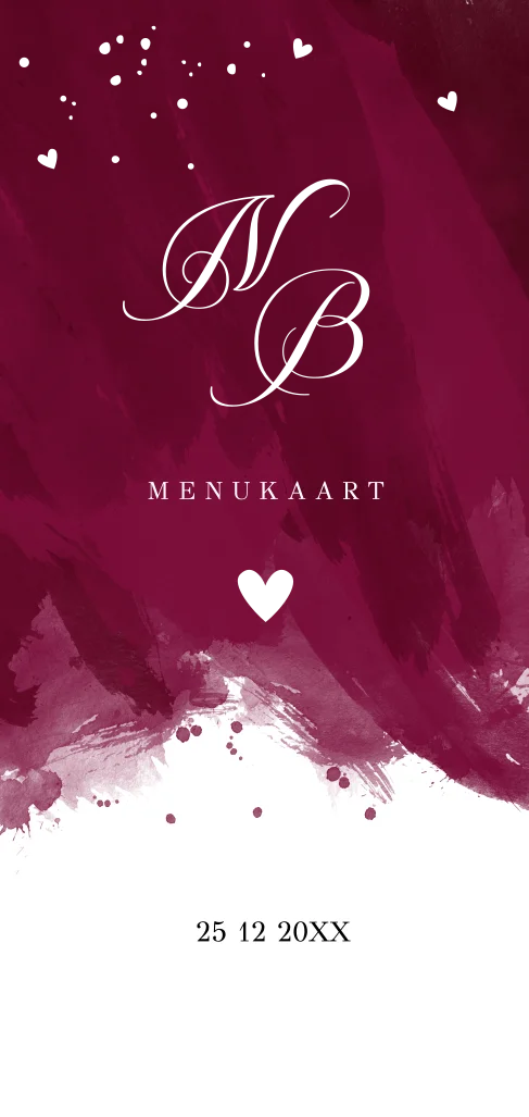 Menukaart huwelijk langwerpig rood watercolour met goudfolie.