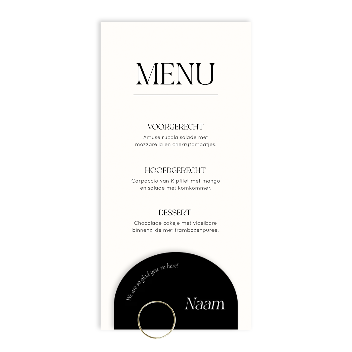 Menukaart huwelijk langwerpig zwart wit modern