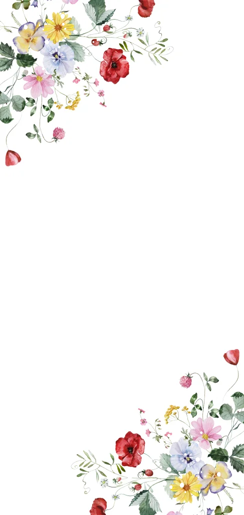 Menukaart langwerpig huwelijk veld bloemen rood geel goudfolie