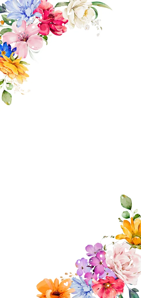 Menukaart langwerpig huwelijk wit met fleurige bloemen en goudfolie.