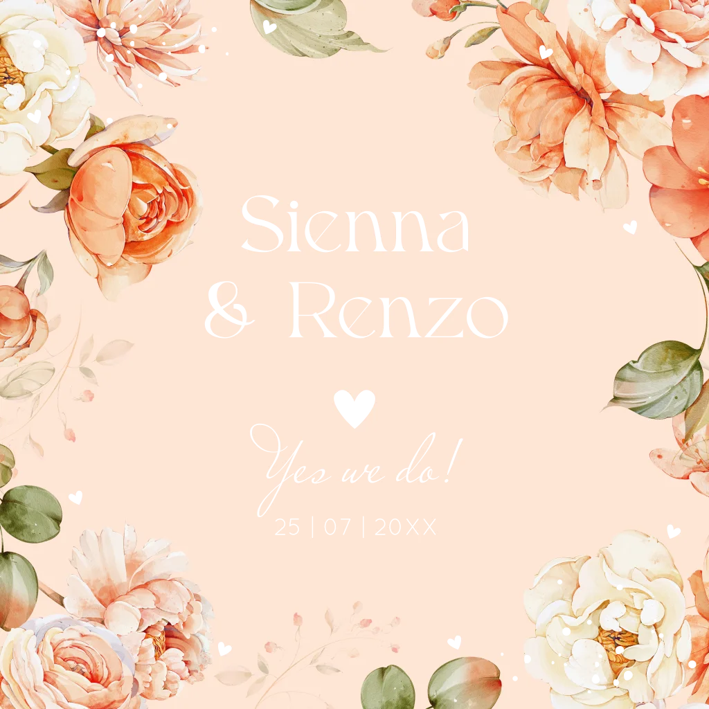 Romantische trouwkaart met watercolour bloemen oranje en goudfolie. Nodig jullie gasten in stijl uit met deze trouwkaart met zomerse gele bloemen.