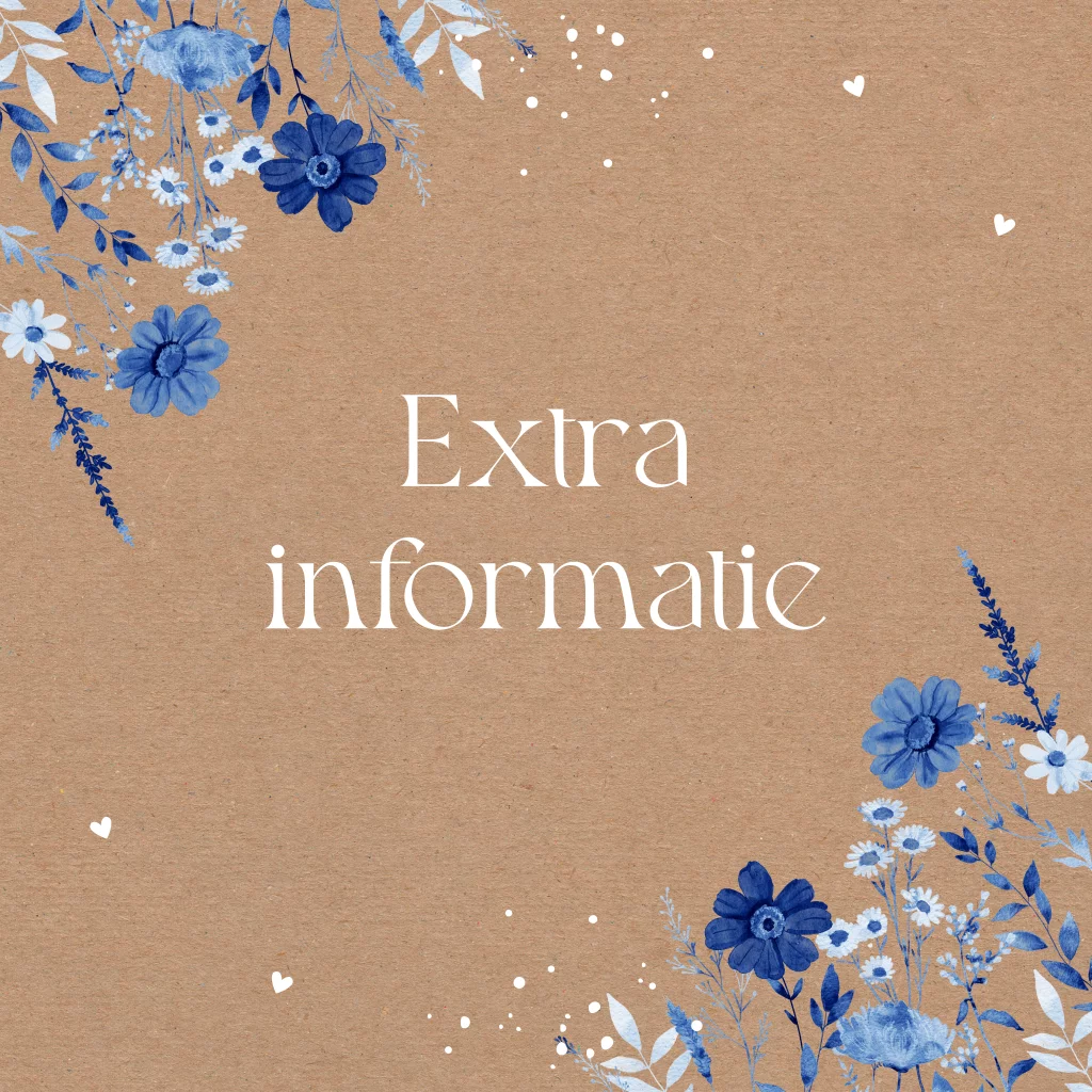 Extra kaartje bruiloft bloemen blauw kraftlook bruin