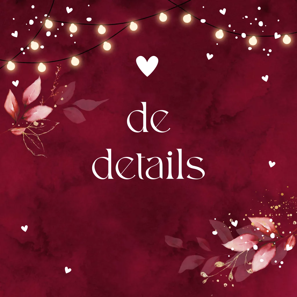 Extra informatie kaartje huwelijk kerst rood lampjes goudfolie