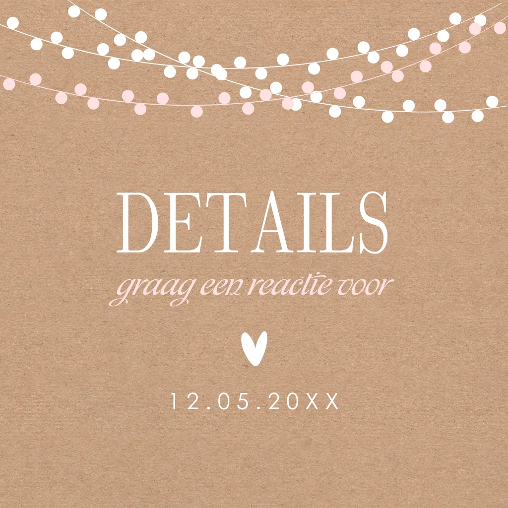 Een kaartje met extra bruiloft details. Handig voor de overige informatie of voor de informatie van de ceremoniemeester.