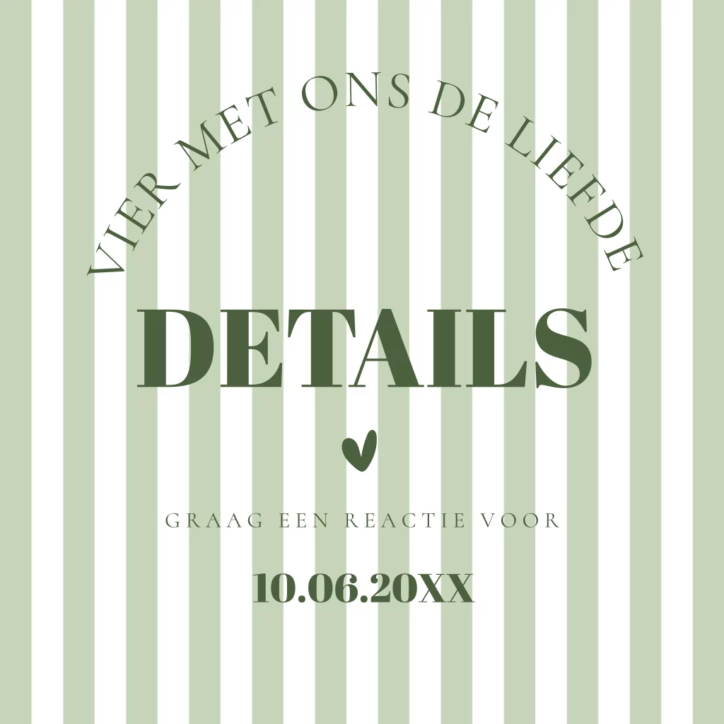 Een kaartje met extra bruiloft details. Handig voor de overige informatie of voor de informatie van de ceremoniemeester.